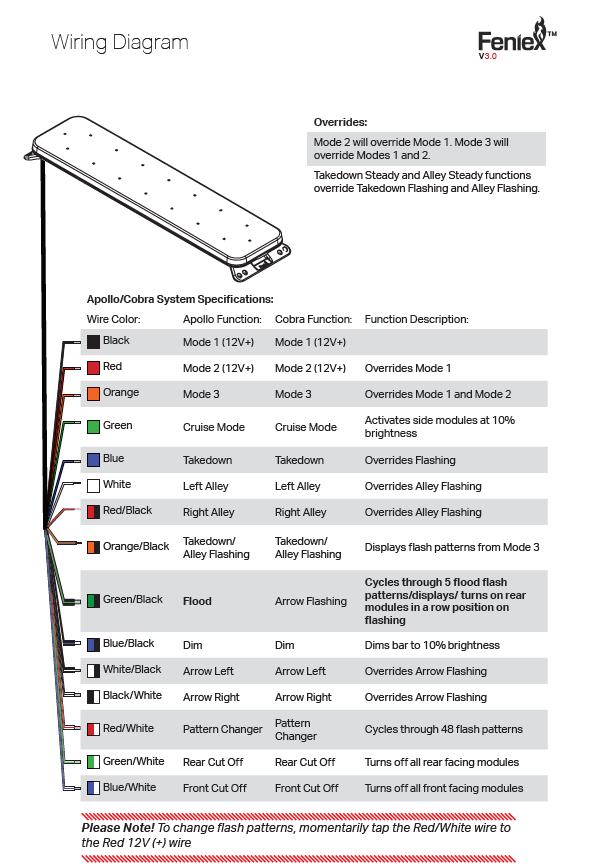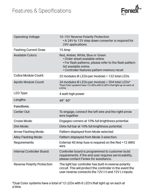 If you are still having issues with your Apollo/Cobra 49" and 60" Full Size Lightbar please contact Technical Support at techsupport@feniex.com or 1-800-615-8350.