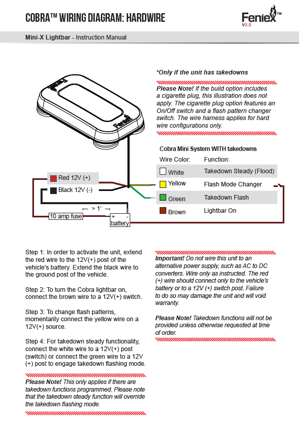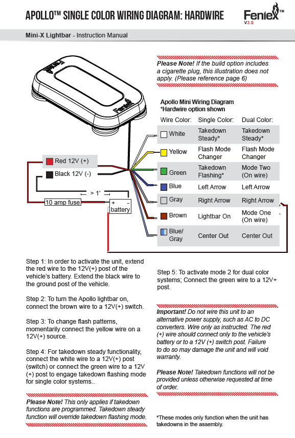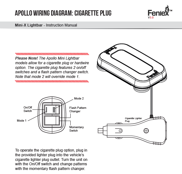 If you are still having issues with your Apollo/Cobra Mini-X Lightbar please contact Technical Support at techsupport@feniex.com or 1-800-615-8350.